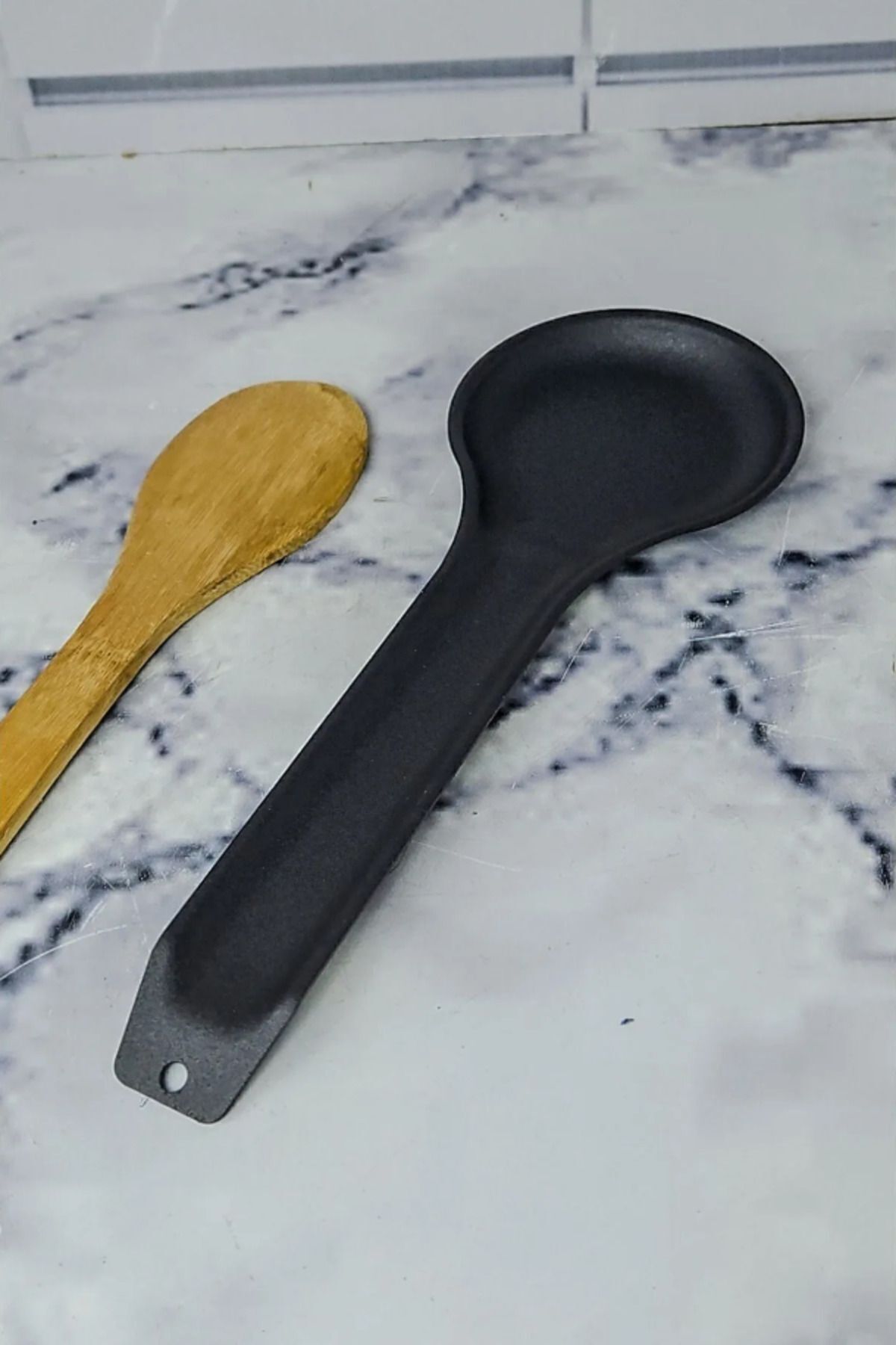 Paslanmaz metal kirli kaşık altlığı, Siyah renk, Tüm ahşap metal kaşıklarin altlığı olarak kullanabilirsiniz Boyut 30 cm uzunluk. ;